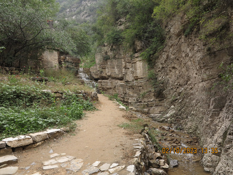 绕到山上,走常规步行路线。这里的悬崖还有抗战往事,在滑岔这里我走路都害怕的地方,当年1938年新八师朱振民副师长命令二十三团翻山越岭,由师家滩渡河增援,从龙门山侧面(大梯子崖)向日军发起攻击,收复龙门山所有阵地。此役对日寇予沉重打击,毙伤日军200多人,迫使其龟缩河津、秸山两地。新八师阵亡连长以下黔籍官兵271名,合葬于陕晋交界处的龙门山麓(此地今属山西省河津市),1987年河津县政协在墓前修建一座纪念碑。走过悬崖,看看玻璃栈道,依旧没有那个胆量。继续走山路,为了节约体力,没有去绕行上桃路那边的折水瀑布,直接带着宝宝玩玩下桃路的瀑布,一路走走玩玩,随意看看七里画廊桃花谷,最后来到依梯城大禹庙,这里是北魏孝文帝当年驻军的地方,也算最高点,一路爬上来,周围黄河确实好看,这里两山夹着黄河非常震撼。下山又是一种体验,首先过了狭窄的禹开石,继续下山,路过摩崖石刻的观音庙,开始进入千年古道梯子崖,当年孝文帝走过的路,真的险,就在悬崖上开出来的楼梯。