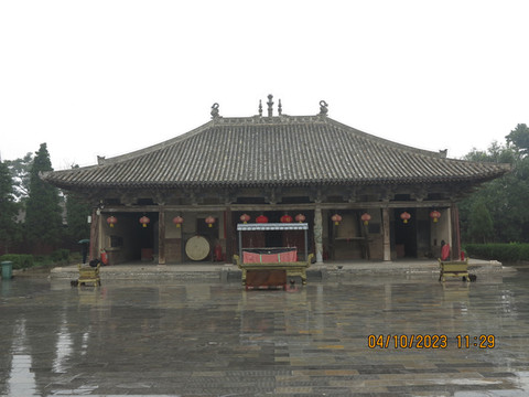 离开东岳庙不远处是万荣稷王庙,这个厉害了,非常低调的宋代木构。据说是梁思成找了几次都没找到的一生遗憾。后稷是属于辅佐大禹,教民稼穑,树艺五谷。属于农耕始祖,五谷之神,说晋南有好多座稷王庙,万荣这座最古。进门就是戏台,金代木构,据说金代的只能后面上,后面下,前面没有楼梯。戏台对面是正殿、全国唯一的北宋庑殿顶,因整个建筑没有通长大梁承托,大殿也叫无梁殿。