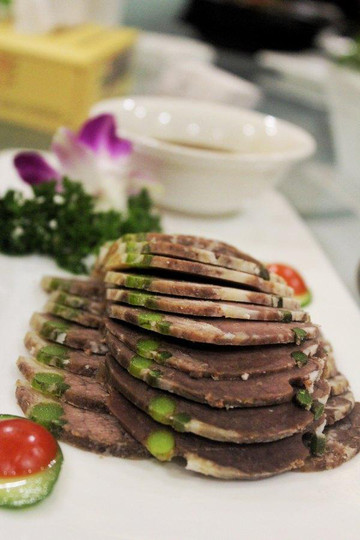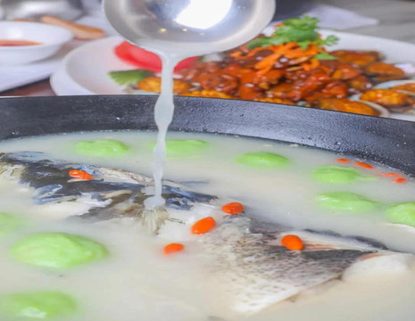 到了亳州,已近中午,老早就听说亳州的药膳很出名,所以我们就直奔药膳馆去大快朵颐了。药膳顾名思义,是在中医学、烹饪学和营养学理论的指导下进行的,药膳并不是儿戏,需要严格的按照医生确认过的药膳配方,将中药与某些具有药用价值的食物相配,采用独特的饮食烹调技术制作而成的色香味形的美味食品。而亳州药膳讲究的是亳州地方特色与中医药文化的结合,既讲究口味要好,又讲究要有营养。我们来的是一家规模很大的药膳饭店,点了当地的特色“曹操鸡”,据说这里面使用了天麻、杜仲等十八种中药材,以及涂蜜、油炸等多道工序。此外,我们还点了一道名菜“曹氏鱼头”。据传,曹操晚年得了头风病,请华佗给自己医治,华佗多次下针用药,每次曹操的病情都有好转,但始终无法根治顽疾。于是华佗打算采取开颅的方法治疗,但生性多疑的曹操拒绝了这一方案。无奈之下,华佗便为曹操开出了食疗药方,而华佗开出的食疗药方中,便有这道鱼头。