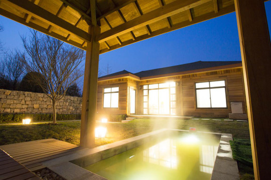 餐厅简单用餐毕,立刻投身温泉的怀抱。诗云“春寒赐浴华清池,温泉水滑洗凝脂”,泡在弱碱性锶泉水里,沐德养性之间,人便忘却凡尘往事,顿觉心中无物,心中无我,快哉!