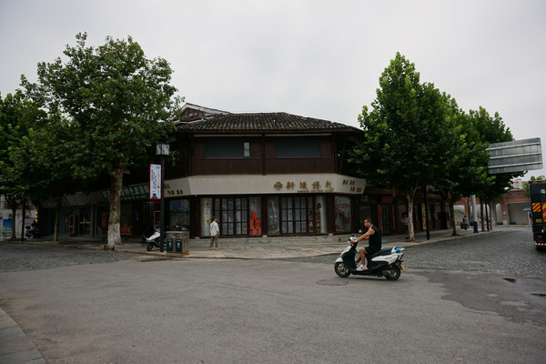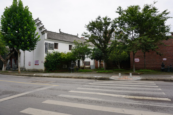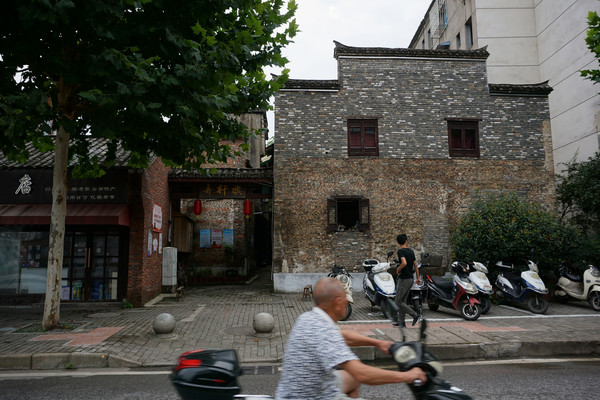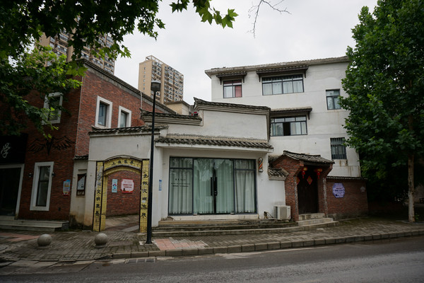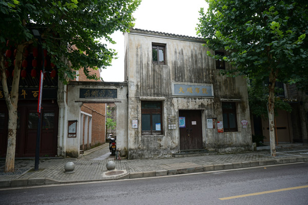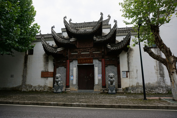 梧桐树下的徽州会馆,建于明清,面朝三闾庙码头,传说此处风水特好。曾经,临街是由余姓商人经营树木、木材的店铺,生意火爆,财源广进。后面有住宅、庭院、阳台。余氏家族在此居住后,不但生意越做越大, 而且文曲星也特别眷顾,他的后代有一人考上榜眼。民国时期,扩建为徽州会馆,成为徽州商人集会议事所在地。