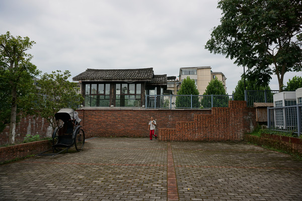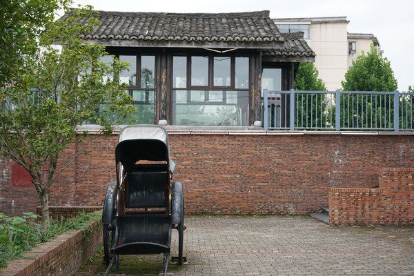 小方砖铺地,红砖围墙,一处的青瓦玻璃亭,一角静静地等待的黄包车,一副当年码头的意境。