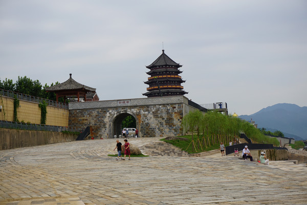 远远地可以看到珠山之颠的龙珠阁。龙珠阁自明代开始就是御器厂、御窑厂的代表性建筑,是明清官窑遗址。现已成为景德镇的城徽。现在我们所见的龙珠阁是1987年重建的一幢仿明重檐宫廷建筑。龙珠阁所在的位置现在是景德镇市御窑遗址公园所在地。那时候御窑的周边就汇聚了很多的民窑。御窑,民窑都是沿河而建。南宋时期,因沿河建窑、沿窑建市而形成雏形。