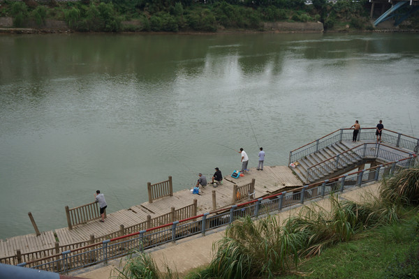 一路上有若干亲水平台。亲水平台也给了市民更大的活动空间,早起晨练,晚上的广场舞都是市民们喜欢的运动。