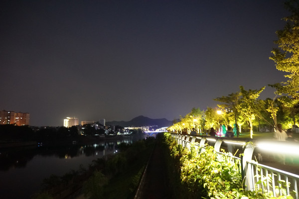 在这里有临河的亲水步道可以欣赏到昌江的夜景。