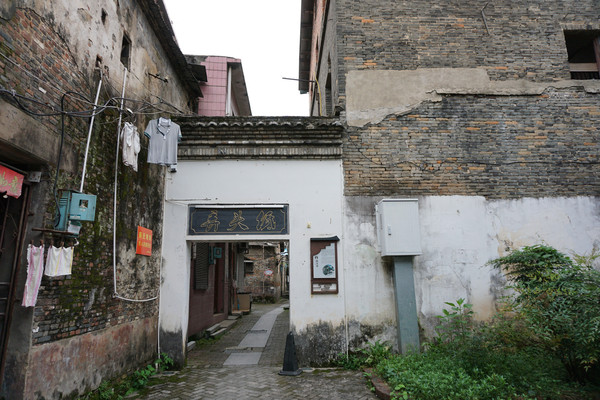 一栋砖木结构的商铺边是一个狭长的弄堂门脸——龙船弄