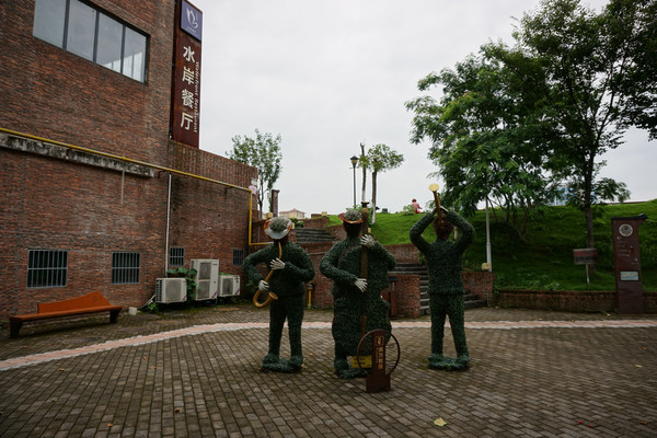 水岸餐厅前的小广场上音乐家的草艺雕塑惟妙惟肖。