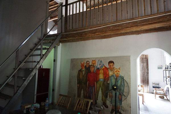 二进是生活区域,楼下是餐厅,楼上是卧室。工作室里的年轻人就是在这样的民宿中完成所有的工作与生活。在这里遇见了一个年轻人,从他的只言片语中知道这里有三个主人。几个志同道合的人在一起做一些以自己专业为主的作品。但这会主人都外出了,我们无法获得更多的信息满足自己的好奇心,只能自己四下里走走看看。