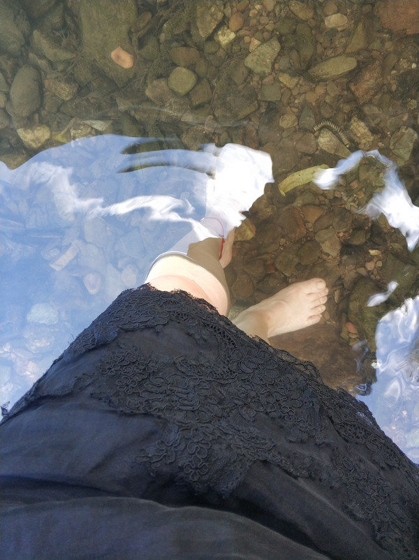 清澈的河水让我像一个孩子似的兴奋的脱去鞋子在水中玩起了戏水的游戏。夏日里光着脚在清凉的河水中体验一把那冰凉透心的感觉,舒爽。