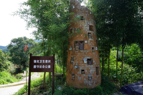 几根翠竹环抱着一个窑炉,一条小道可以继续向山中步行,但行车是不行的了。