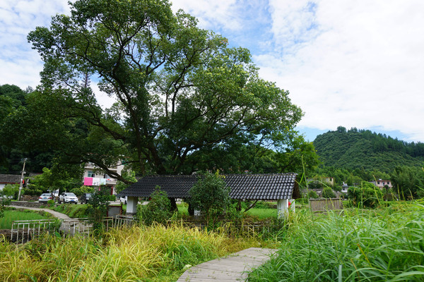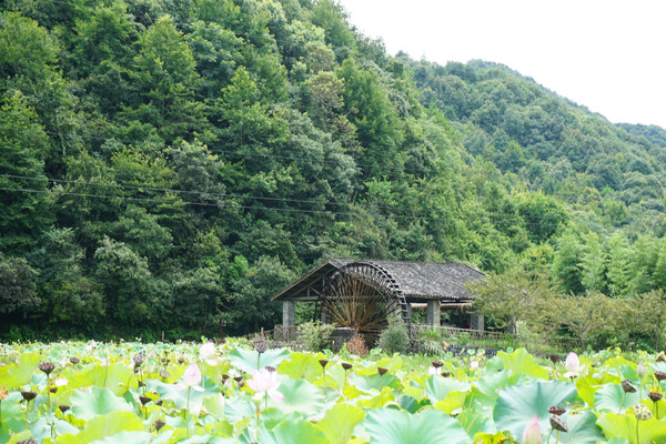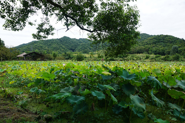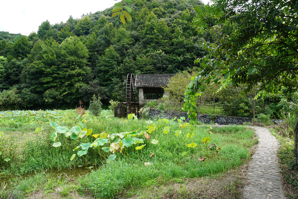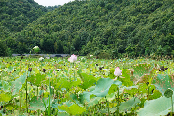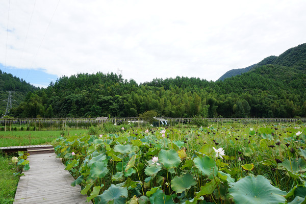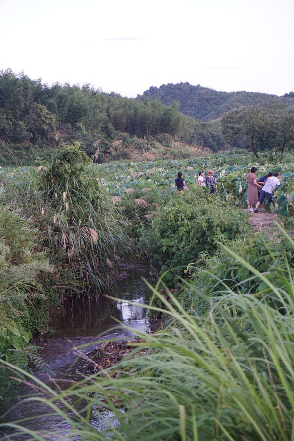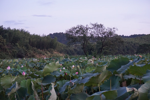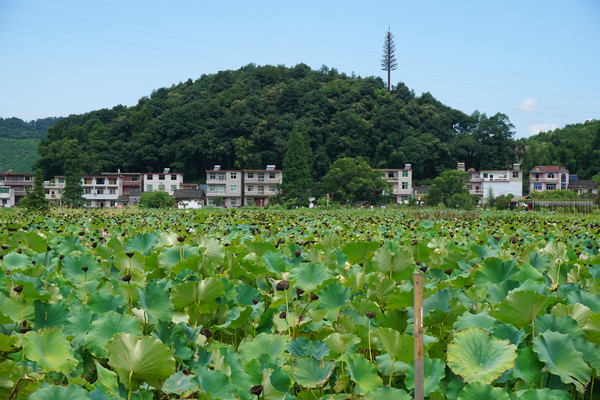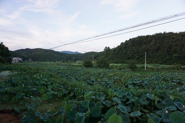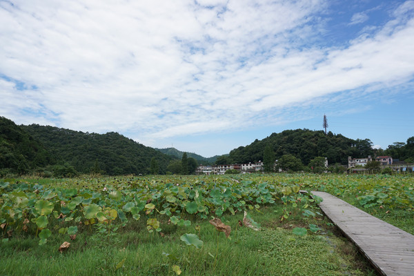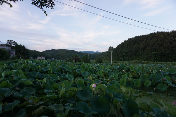 山环之下,在这个小山村,无论你站在哪里,一眼望去看到的风景就像一幅江南山水墨画,一座山连着一座山。山脚下,荷田那头的屋吸引着我们继续。