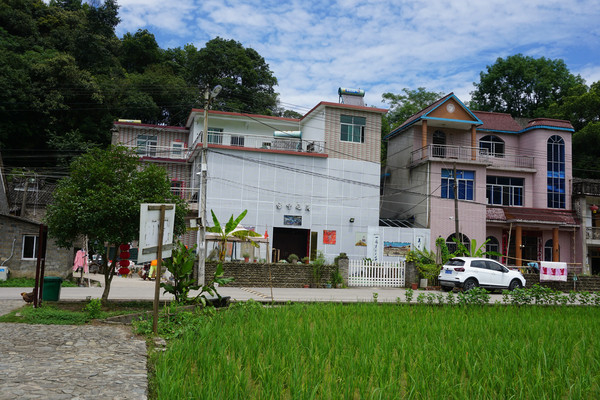 回到村中主干道,一侧是一栋栋或古老或新式的民宅,一侧是绿油油的稻田。村屋没有大家闺秀的气派却有着小家碧玉般的温婉。这两栋并列而立的房屋现在都有着特别的功能。