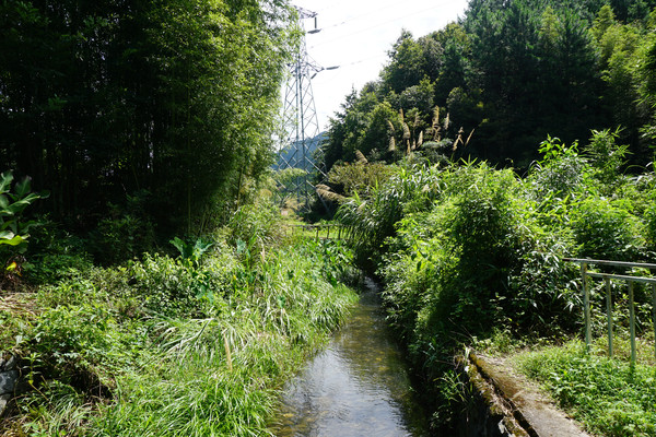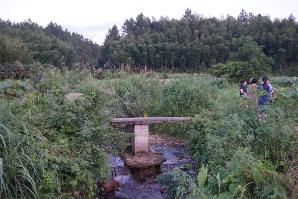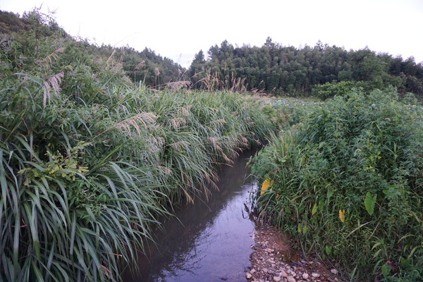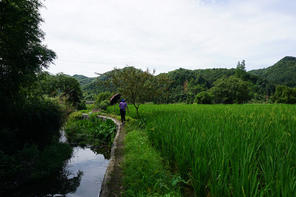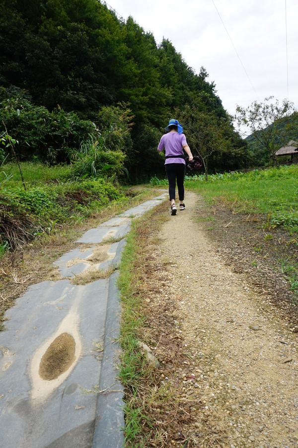稻田边一条水渠中的溪水欢快的流淌,唱出欢乐的歌。我们离开村舍,沿着石块小路继续深入田野山林中。