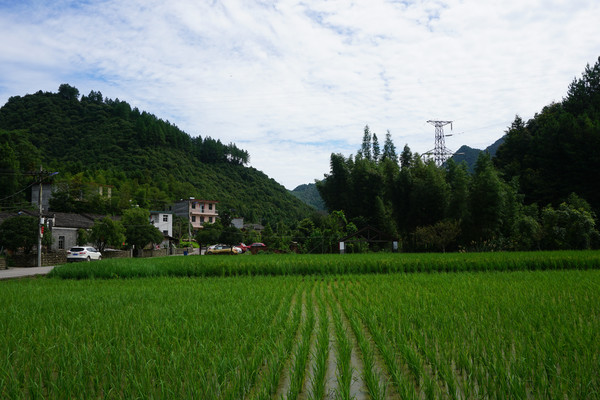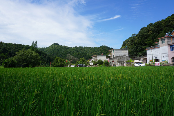 进坑村依山傍水而建。夏日的进坑村在蓝天白云下描绘出多姿多彩的画面。山的墨绿,稻的青绿,葱茏,成熟,张扬地把生命展现。