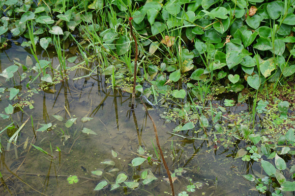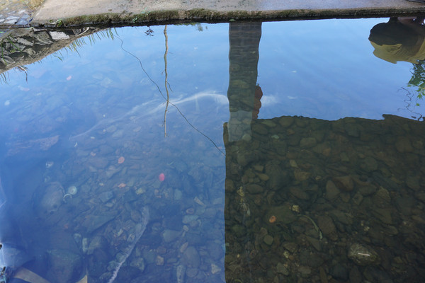 清澈如镜的河水将水中物,岸上景组合成一幅美丽的图画。