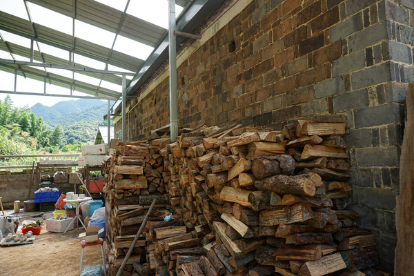 墙边码放整齐的柴是用来烧窑的。