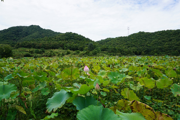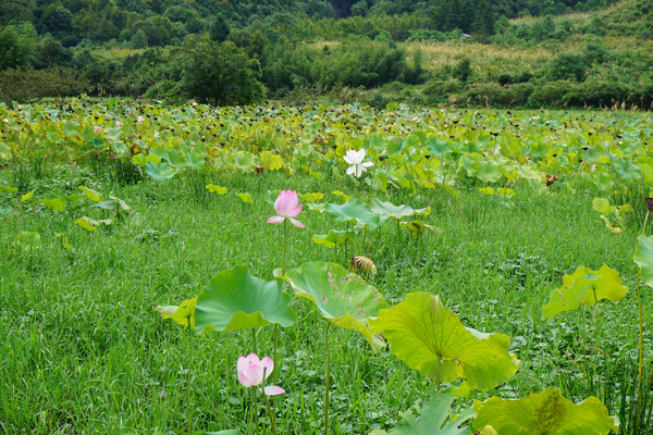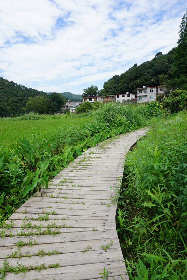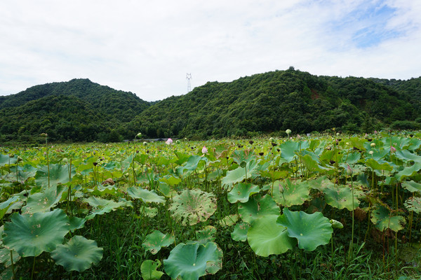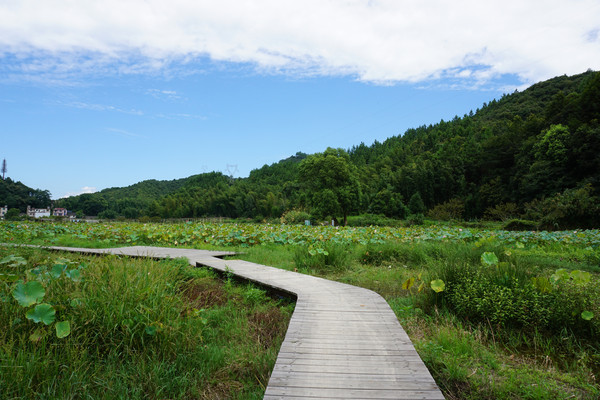 古道间行走,可以闻到野草散发出的自然的气息。空气是清新的,深绿的山峦,青绿的荷田,还有那粉嫩的荷花。