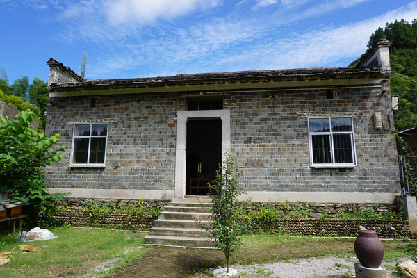 院中一栋朴素的青石砖的房屋。