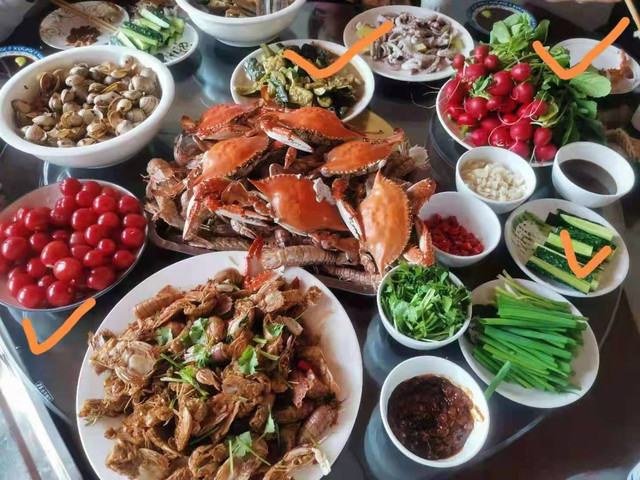 民宿还配备厨房,游客可以选择和同游的伙伴一起做饭,基本厨具和调料应有尽有,还可提供海鲜餐饮服务,教学一道海鲜家常菜,体验当地渔家生活,感受特色渔家风情。