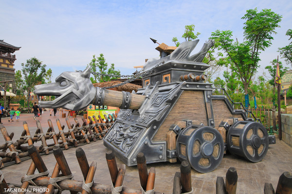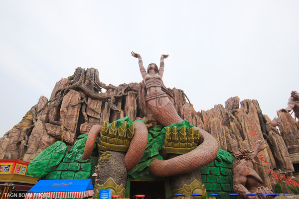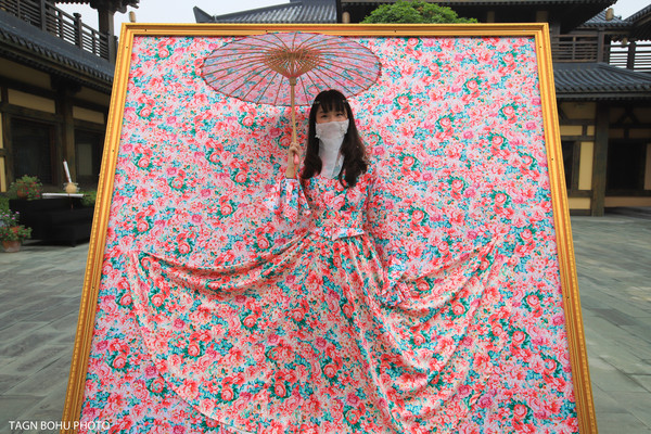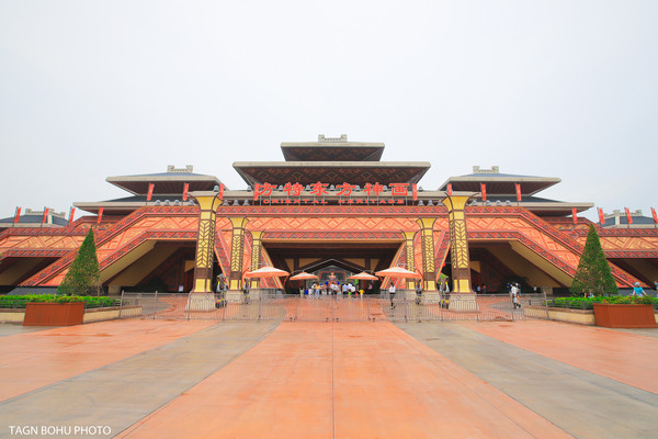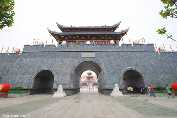 这是湖北地区规模最大、档次最高的历史文化主题乐园。走进乐园里传统与现代完美交融,历史与艺术激情碰撞,置身其中,一步一景,堪称完美的游玩体验。走近园区第一个看到的就是一位演员打着雨伞和相框融为一体。