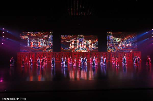 我们口中所熟知的荆楚文化都因楚国、楚人而得名。《楚乐》选择了四个不同的角度,分别是楚巫、楚舞、楚歌和编钟,带领我们感受楚文化的神奇和瑰丽。在演出最后,成百上千的编钟从天而降,配上翘袖折腰的楚舞,场景宏大,美轮美奂,让人沉浸在神奇、浪漫的荆楚风情中不能自拔。