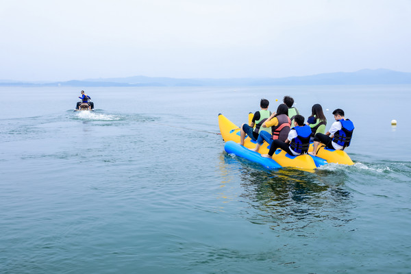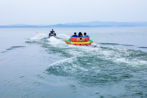 让我万万没有想到的是,水上乐园一般是在海上比较多,在湖中体验水上活动让我感受了一把什么叫着速度,坐上水上摩托车,加大油门一直子就飞快的飞了出去一样。飞快在湖面上滑来滑去的。水上摩托车教练还表演了水上漂移的高难度动作,让我们看得心潮澎湃。
