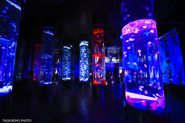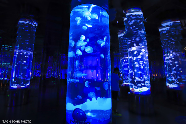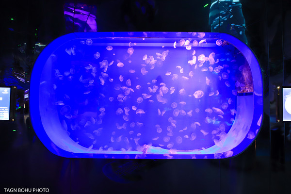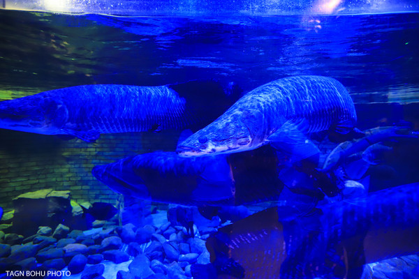 还有一个很梦幻的水母馆打卡点一定要去看看水母,透明的玻璃鱼缸里面有很多水母,随着灯光不同颜色的切换,水母在里面游来游走,非常的梦幻,值得打卡。骨舌鱼是体型很大的淡水鱼,也是一种非常古老的鱼类。