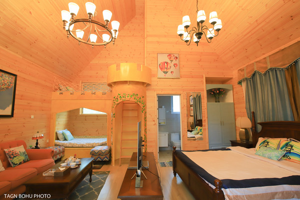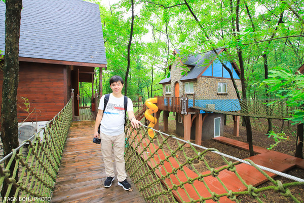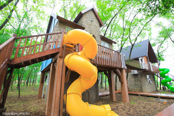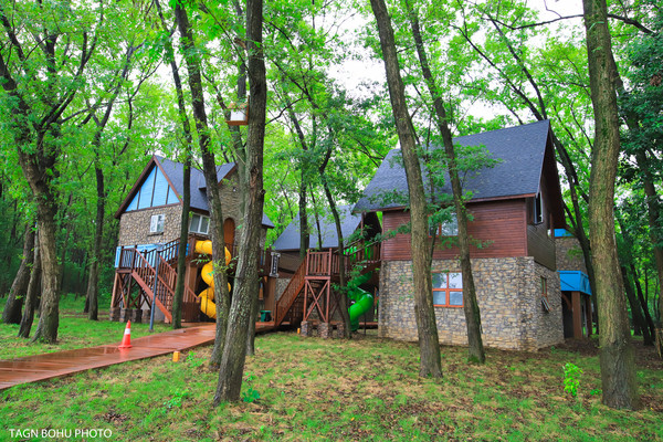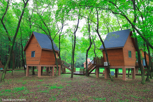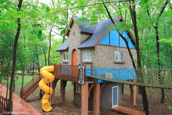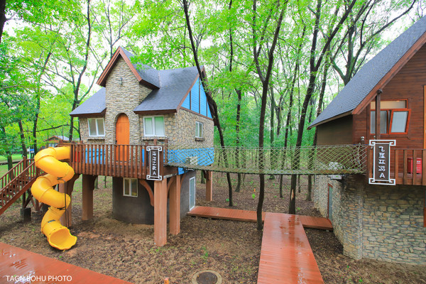 漫步在郁郁葱葱的森林中,鸟语花香,空气清新,一排排木屋呈现在眼前,儿童城堡木屋又像是在爱丽丝梦游仙境一样,周末带上孩子一家人到这里度个假是多么惬意的事啊。