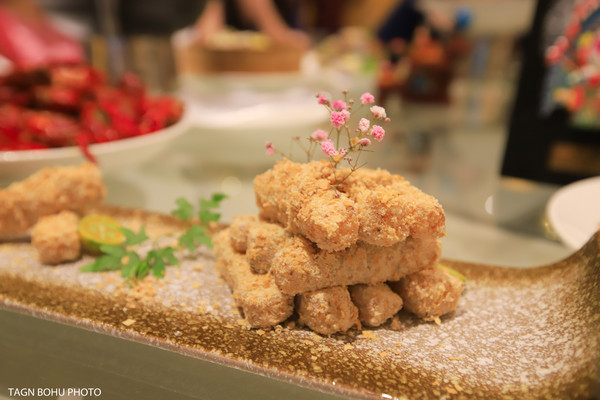 还有甜品,里面南瓜,外面是花生酥,吃起来味道不错,喜欢吃甜品的都说好吃。