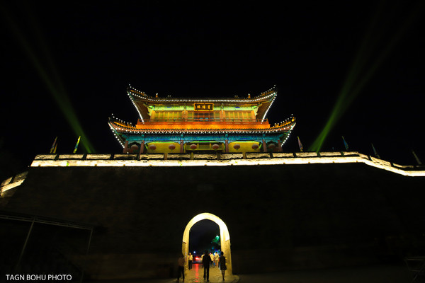漫步荆州古城宾阳楼,画舫夜游,赏光影秀