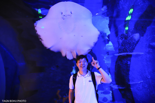 自带笑脸的魔鬼鱼,当我们走在透明玻璃下面的时候,魔鬼鱼就会在游到头顶上面,非常的可爱,你看那脸上自带的微笑,很受游客的喜欢,纷纷来到这里打卡拍照 。