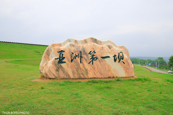 湖北松滋市的洈水大坝是亚洲第一大人工型土坝,有岛屿159个,素有“楚南仙境千岛湖”之美誉。湖水清澈见底,远远看去蔚为壮观。就在大坝旁边有一片绿色的草地,有一个巨大的石头刻着“亚洲第一坝”。