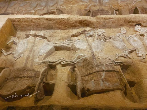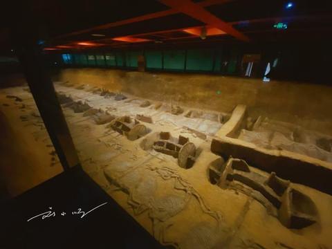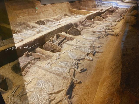 虽然整个一号大车马坑还有三分之一并未发掘,但是按照其中轴对称的特点,专家推测整个大车马坑一共葬有车辆66乘,马匹258匹,规模宏大,令游客惊叹!