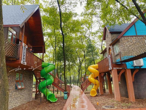 另外,还有亲子主题的滑梯房,带有弯曲滑梯的丛林小木屋,是不是让你突然像是穿越到了一个童话般的世界里?