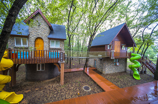 超级喜欢洈水汽车露营地,记得两年前来的时候入住了营区的星空帐篷,而我这次入住的亲子城堡,房间里有一张大床和上下铺的两张儿童床,装修十分温馨舒适,树屋门口还有滑滑梯,简直就是孩子们的游乐园,特别适合家庭出游,亲子的选择!