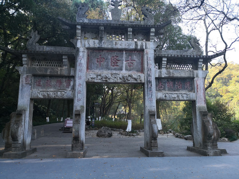 下景区车左前方不远就是古隆中石牌坊,游人依次在这里留影,四柱三门的石牌坊并不十分高大,但气势庄严古朴,让人心生敬仰。按景区游览路线依次参观隆中书院、武侯祠、三顾堂、草庐亭等景点,登山至腾龙阁,登临阁顶遥望四方,果然山势巍峨绿荫覆盖。沿另一条路下山来到三国文化村,下行不远在诸葛食府用过一荤一素一汤加米饭的套餐每人才20元,吃得很饱,景区内这样的价位,已经是非常便宜了。饭后沿路游览老龙洞景区,竹林青翠生机盎然。牡丹园、樱花园在初冬虽然很暖,但毕竟不是她们绽放的季节,不过不知名的小鸟啁啾期间倒也别有一番趣味。在躬耕田、琴台、荷花池游览后前行又见古隆中石牌坊,知道此行已近尾声,在景区车停车处问询工作人员是否还有可游览处,告知草庐剧场正在建设,月英花谷目前这个季节无花可观,所以没有什么可游览的了,可以乘景区车到广德寺下车游览一下,然后直接乘512路公交回襄阳城。道谢之后按工作人员所说完成游览。值得一提的是在隆中景区的荷塘,广德寺附近的荷塘都见到了好多野鸭,足见此地生态之完好。但我还是不厚道的想了一下野鸭的味道是不是很鲜美!?