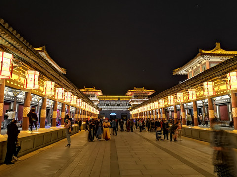 饭后在襄阳站乘1路公交,去白天在惠游湖北预定好的唐城景区夜游。景区作为影视基地,仿唐代建筑十分雄伟壮观,在五光十色灯光的映照下,更显华丽。游人很多,尤其是不同区域定时的表演,更是吸引大批游人驻足观看。景区内城、门、楼、阁、塔、桥、山、水、花、草、树木俱全,管理非常规范,夜游别有一番风情。