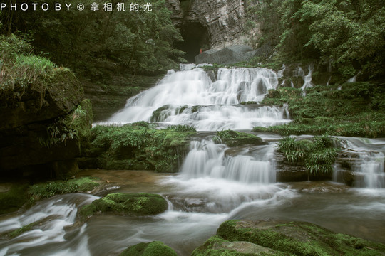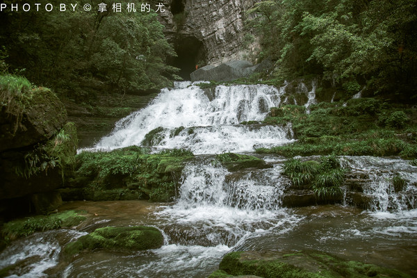 天然形成的六级瀑布黄龙瀑从地下暗河涌出,进入丰水季时,身在其中讲话完全被屏蔽。