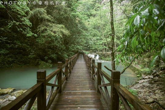 →霸王河徒步亲氧线(步行约3公里,游览时间大约1.5小时,途经板壁峡——幸福门——招碟泉——箬竹林——千榔岩——索道下站休息平台——两河口观景平台——索道下站休息平台)