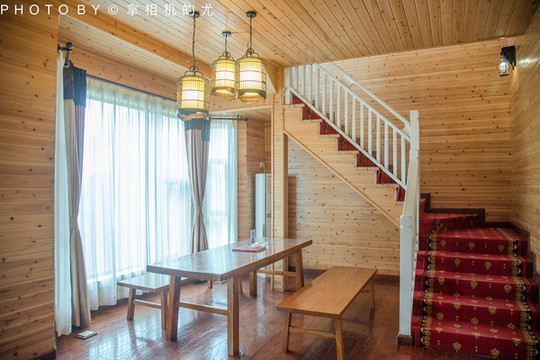 小贴士:房间宽敞通透,准星标准,干净舒适。山里虽常有雨雾,但木屋内却没有感到潮湿感,中央空调供暖设施也很给力。