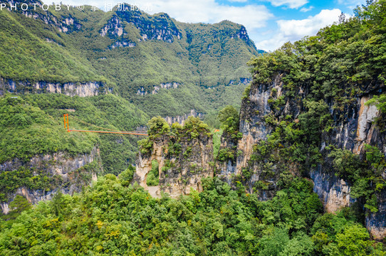 →大岭头观景平台(一览峡谷纵横交错的美景——遥祭青龙观——远眺悬崖索桥)→乘索道下行