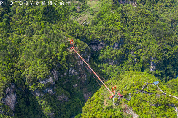 站在山头瞭望,青山绿树掩映下的民居升起袅袅炊烟,与鲜红的索桥同样醒目,宛如一幅山水田园的景观,又有一种世外桃源之感。通过对景区的保护性开发,已经基本解决了景区内12个村群众的用电、饮水、住房、行路及就医、学生上学等问题,也使得“致富桥”更加名副其实。