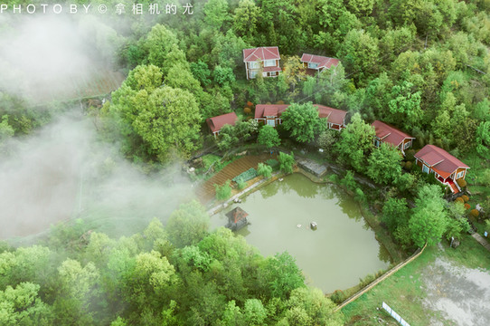 在木屋门口放飞无人机,才发现我们所处之地真的如同仙境。