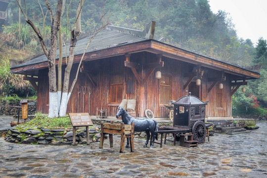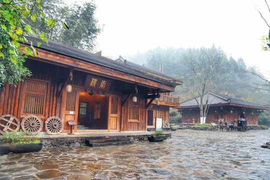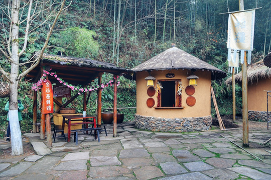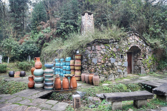 爱耕居,隐匿在景区秦古内,从桃花洞进入,便是《桃花源记》里记录的“初极狭,才通人”,进入后“复行数十步”便豁然开朗,再拾级而上,经过溪流,便来到了“爱耕居”。
