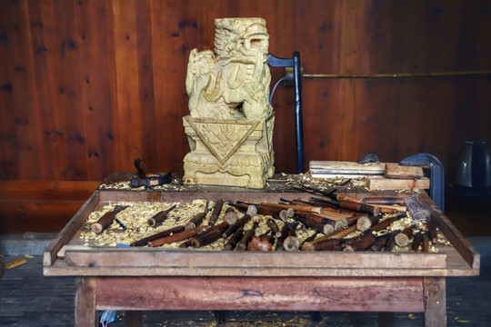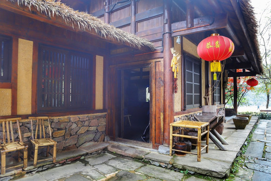 木质结构的茅草屋,也重现了古人居所的面貌。