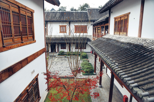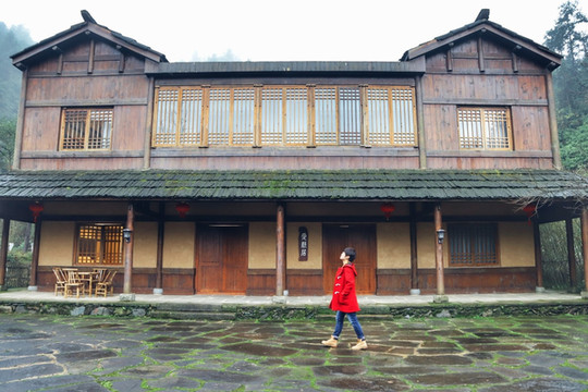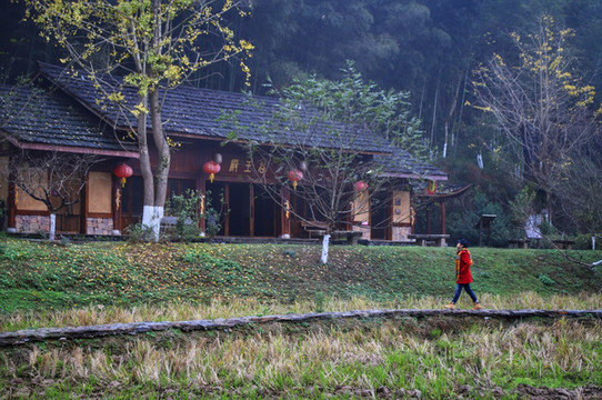 民宿是古香古色的木制结构,一共只有九间房,小而精致,但却充满田园风情,让人不得不又想起古诗中的场景。