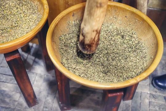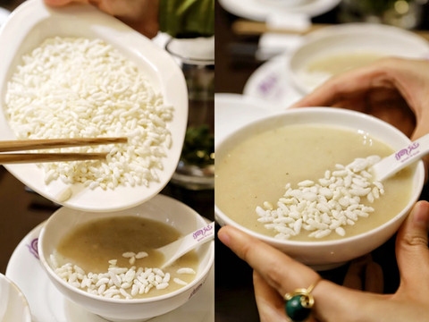 据说洞仙餐厅做的擂茶,食材和做法经过反复揣摩和研发,集合了五行金木水火土,对应人体的五脏六腑,有着养生健体的功效。