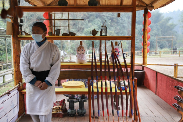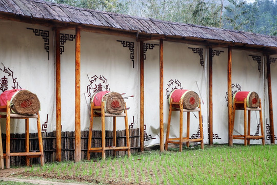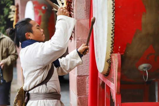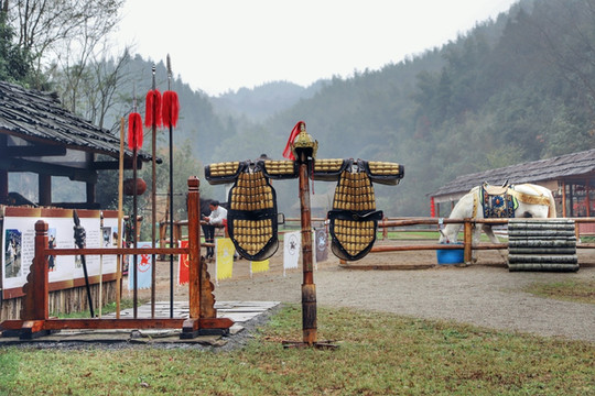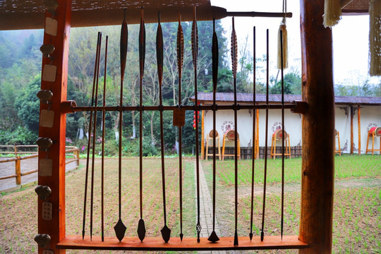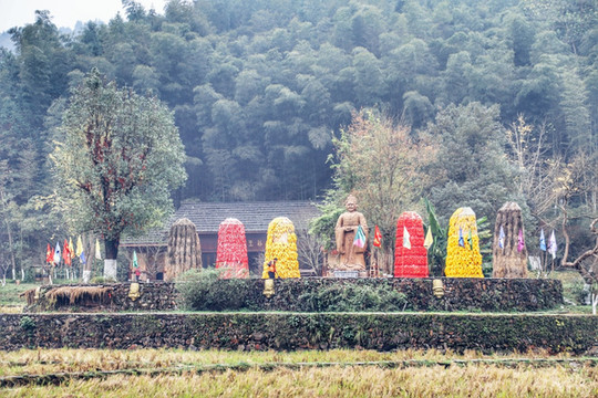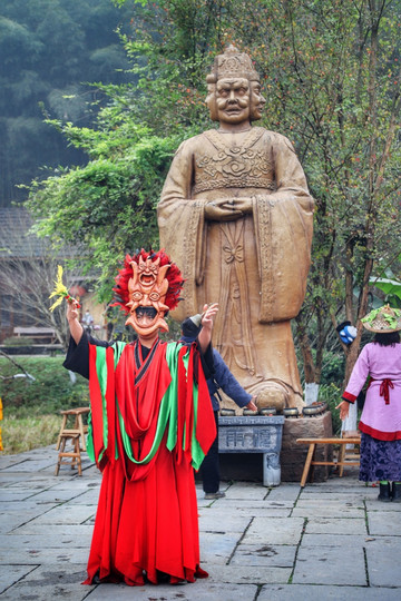 在桃花源景区里,每天于指定时间在不同的场所都会上演各种文化类表演, 比如 我们这次看的两场:一个是位于寰楼的特色婚礼以及竹篼舞,一个是位于打谷场的傩舞表演。