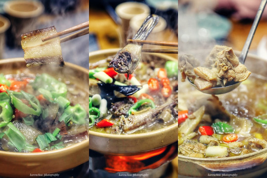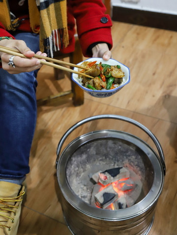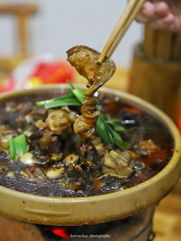 小火炉的火力控制也有讲究,先用大火炖,后用小火熬,其味先是浓鲜,吃道最后汤汁渐微,只剩一些油汁,这时干香的风味就出来了,也是最美味的时候。