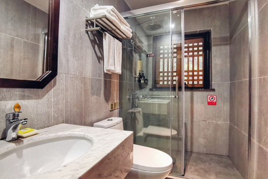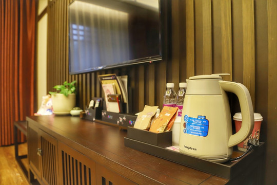 房间舒适,基本洗漱用品齐全,提供烧水壶和两瓶饮用水,脱鞋提供一次性和胶拖鞋,热水给力。